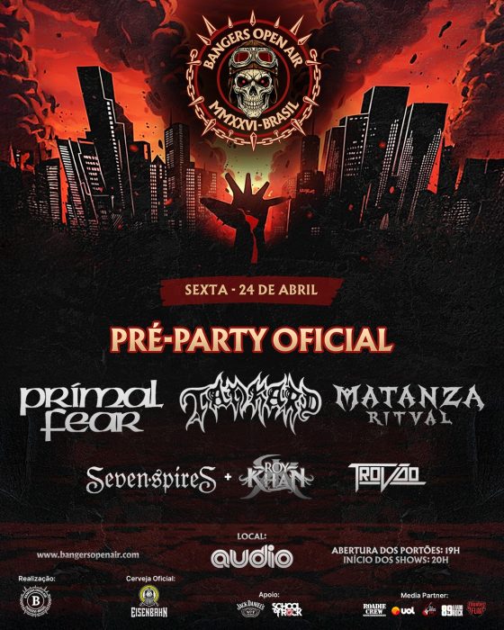 Atrações: Primal Fear, Tankard, Matanza Ritual, Seven Spires (feat. Roy Khan), Trovão e DJ Set.