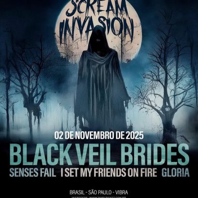 O Scream Invasion, novo festival em São Paulo/SP que acontece dia 2 de novembro, leva ao palco do Vibra SP as bandas internacionais Black Veil Brides, Senses Fail, Set My Friends on Fire, além da nacional Gloria. A realização é da Gig Music junto ao Hangar 110. Ingressos: pixelticket.com.br/eventos/27656/screaminvasion/ingressos Black Veil Brides Formada em 2006 em Cincinnati...