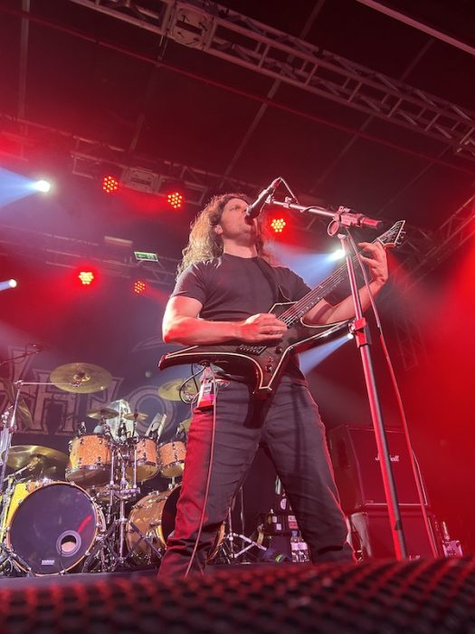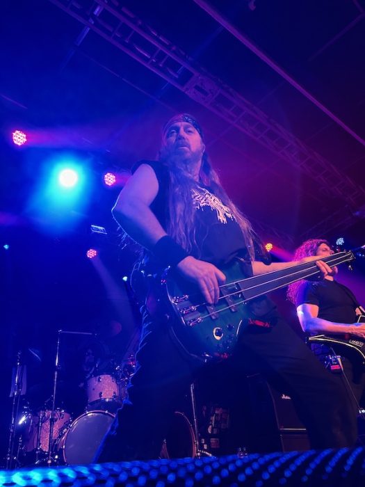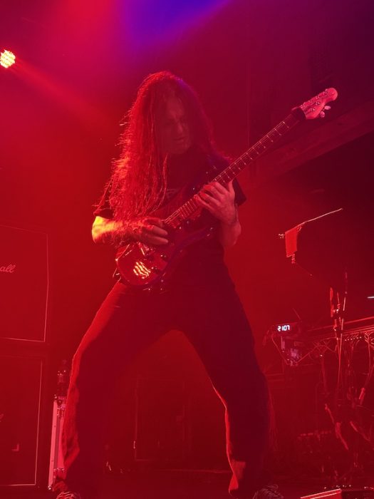 Quero fazer um comentário especial sobre a qualidade técnica do vocalista e guitarrista Max Phelps. Impressionante sua qualidade vocal, cantando no mesmo estilo de Chuck, com um timbre um pouco mais agudo, mas de uma semelhança técnica absurda. Uma voz gutural, com screams técnicos e nítidos, a ponto de conseguirmos tranquilamente acompanhar a letra enquanto o ouvíamos. Sem contar a qualidade como guitarrista: implacável, sem erros, em total respeito aos timbres e às formas de tocar originais, provando que a fama que vem recebendo faz todo sentido — no palco, é o Schuldiner encarnado. Em comparação aos demais, interagiu menos com o público, mas nos momentos em que pediu para a galera vir pra cima, foi prontamente correspondido.