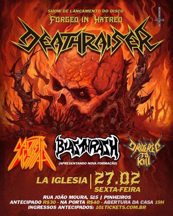 Ingressos: https://101tickets.com.br/events/details/Deathraiser—Sadistic-Messiah—Blasthrash-e-Orde
