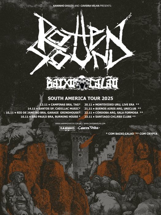 Rotten Sound no Brasil em novembro13.11 • Campinas BRA, Tag Ingresso: https://101tickets.com.br/ 14.11 • Santos SP, Cadillac Music Ingresso: https://101tickets.com.br/ 15.11 • Rio de Janeiro BRA, Garage Grindhouse Ingresso: https://101tickets.com.br/ 16.11 • São Paulo BRA, Burning House, no Bréa Extreme 2025 Ingresso: https://101tickets.com.br/ |