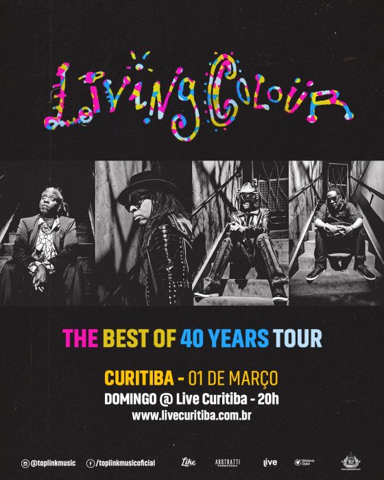 Um dos mais importantes nomes do rock norte-americano, o Living Colour anunciou que trará a The Best of 40 Years Tour para a América do Sul em 2026. Após mais de duas décadas, o quarteto retorna aos palcos de Curitiba, para apresentação única na Live Curitiba, no dia 01 de março de 2026. Os ingressos estão disponíveis na Bilheteria Digital, com preços a partir de 219 reais.