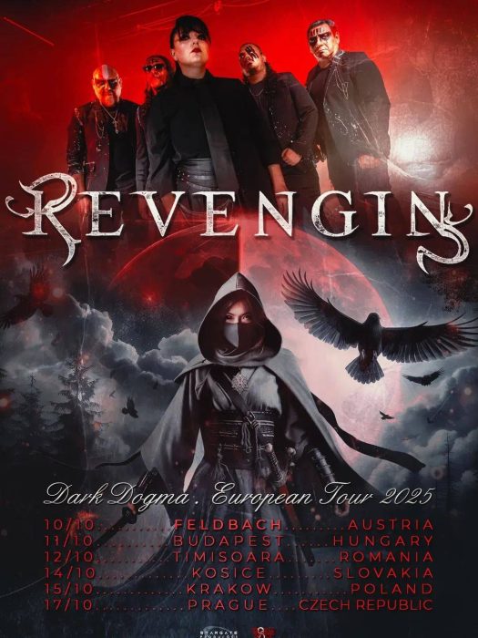 A “Dark Dogma European Tour 2025”, que já passou por Minas Gerais, Rio de Janeiro e São Paulo, levará a Revengin a seis países do leste europeu, passando por cidades importantes da cena metal: