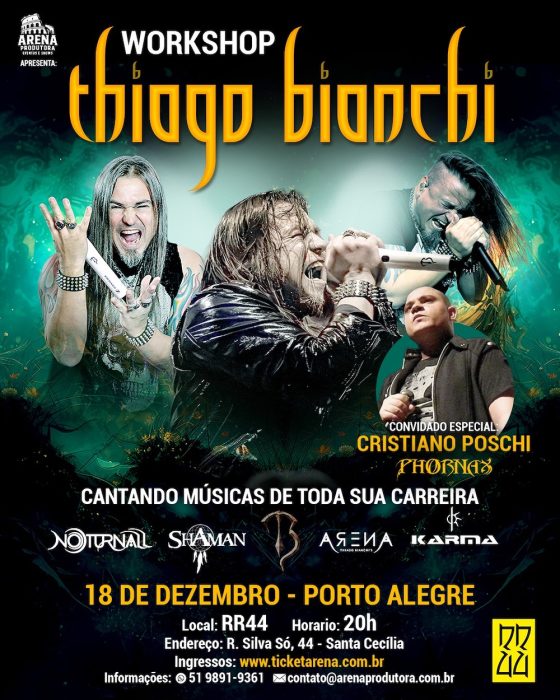 Na quinta-feira, dia 18 de dezembro de 2025, no RR44 em Porto Alegre, mais do que um workshop, o encontro conduzido por Thiago Bianchi se revelou uma verdadeira imersão no universo do metal brasileiro, onde técnica, experiência e franqueza caminharam lado a lado. Com produção da Arena Produtora, o evento reuniu músicos e fãs, seja para aprender ou apenas apreciar o trabalho do vocalista brasileiro.